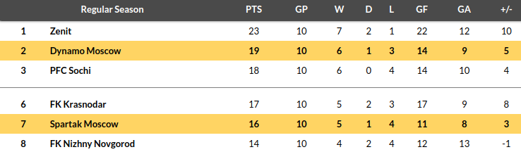 Spartak vs Dinamo Moscow Prediction: Standing