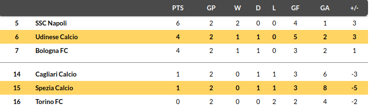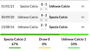 - Spezia were left frustrated last time out losing 6-1 to Lazio and will have a chance to make amends when they welcome Udinese.