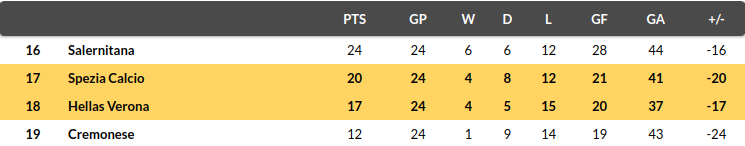 - Spezia currently has a five-point lead over the relegation zone, while Hellas Verona is comfortably mid-table.