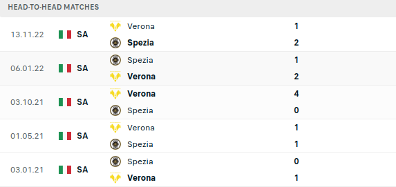 - The previous Serie A fixture between the teams saw Spezia triumph 2-1 at Stadio Marc’Antonio Bentegodi in November.