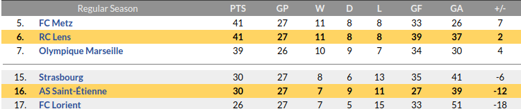 - Lens are on a seven game unbeaten streak claiming four draws in that spell. The visitors have only lost once in their last 10 encounters and this sees them level on point with number five.