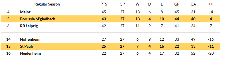 St Pauli vs Borussia Monchengladbach Prediction: Standing