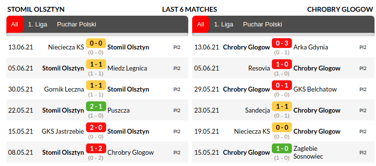 Chrobry have won the last two meetings and have three in the last five fixtures.