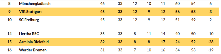 Stuttgart vs Arminia Bielefeld Prediction: Standing