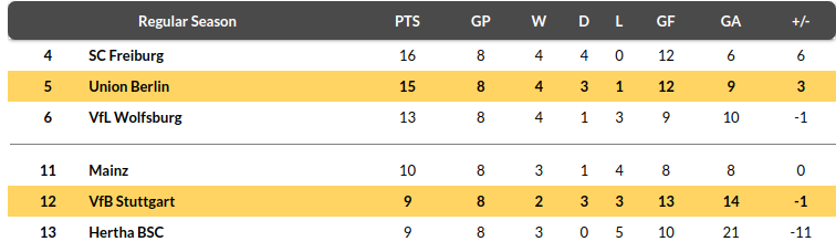 - The Union fairytale continues as they punch above their weight in the Bundesliga, losing just one of their opening eight league matches (W4, D3) as they look to qualify for European football twice in two campaigns. However Feyenoord were the villains in European midweek action as Union lost 3-1 in the Netherlands, but here they have a golden chance to win four straight Bundesliga matches for the first time in club history against a team they’re unbeaten against in four H2Hs (W1, D3).
