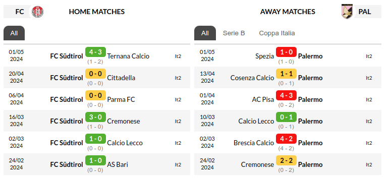 This match presents an interesting clash of strengths. Südtirol will be looking to extend their home unbeaten streak and end the season positively. In contrast, Palermo will be desperate to break their winless run, especially away from home, where they haven’t secured a victory in their last three matches.