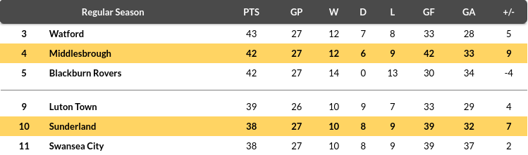 Sunderland vs Middlesbrough Prediction: Standing