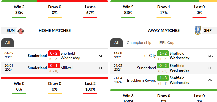 Sunderland vs Sheffield Wednesday Prediction: Standing