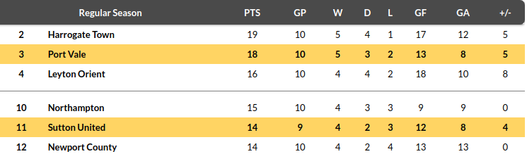 Sutton vs Port Vale: Standing