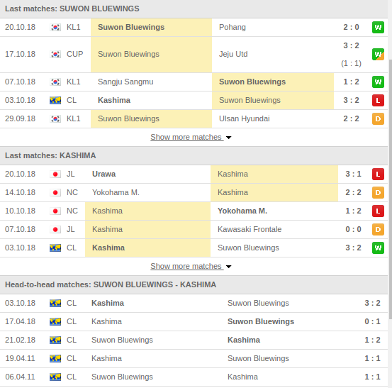 - Even though Kashima have been performing poorly in their home league, they managed to beat Suwon 3-2 in the first leg and they will be faced with a hard challenge trying to build on that win.