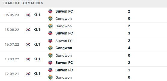 - In their previous K League 1 meeting, Suwon emerged victorious with a 2-0 win over Gangwon at Suwon Sports Complex in May.