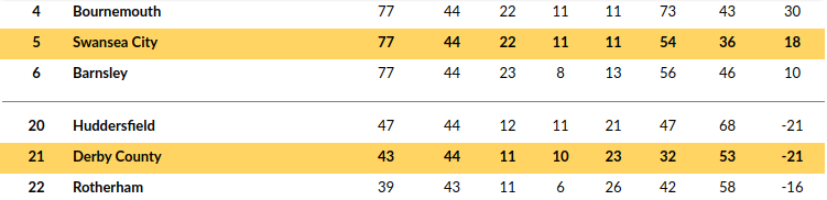 - Swansea have drawn two of their last three matches, losing the other. The Swans have already booked a place in the playoff and are likely to rest players ahead of the playoff matches.