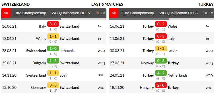 Switzerland vs Turkey Prediction: Current Form