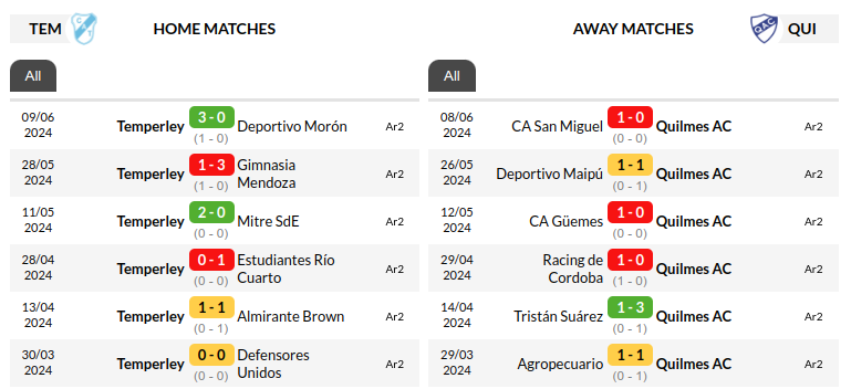 Despite Temperley’s recent form and home advantage, their head-to-head record against Quilmes paints a worrying picture. They have succumbed to defeat in 60% of their last five encounters against their rivals. This historical dominance by Quilmes serves as a reminder that Temperley cannot afford to underestimate their opponents, particularly considering Quilmes’ potential to rise to the occasion in important matches.