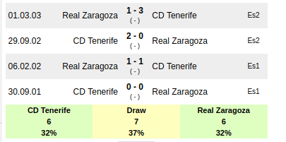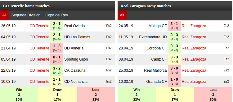 Tenerife Vs Zaragoza Prediction: Home/ Away Matches
