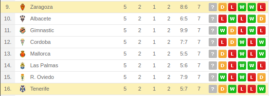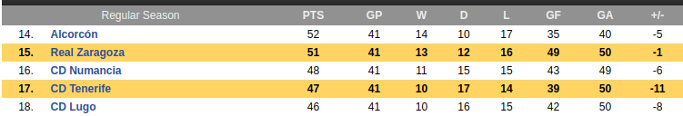 - The most crucial position on the Laliga two table have already been set and Tenerife and Zaragoza are lucky to have survived relegation.