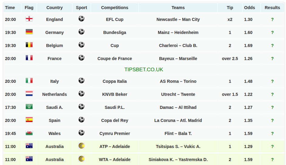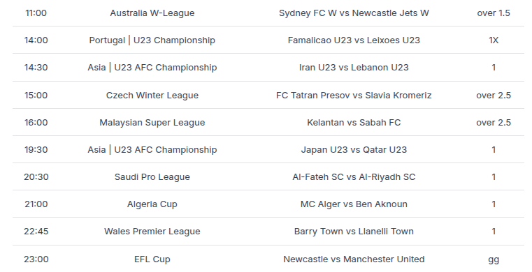 we managed 4 wins out of 5 in yesterday’s prediction and looking for a clean sweep todayToday’s Sure FREE Betting Tips: 14:01:2025Hello and welcome to today’s Free Betting Tips