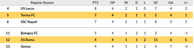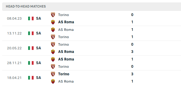 In their previous meeting in Serie A action, Roma emerged as the victors with a 1-0 scoreline at Stadio Olimpico Grande Torino during the previous season. Paulo Dybala was the scorer of the only goal for the Giallorossi, converting a spot-kick in the eighth minute.