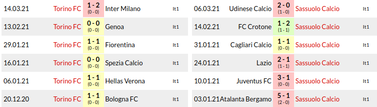 - Torino lost to league leaders Inter Milan ast time out making back-to-back defeats, they had drawn five and won once in the last 11 encounters.
