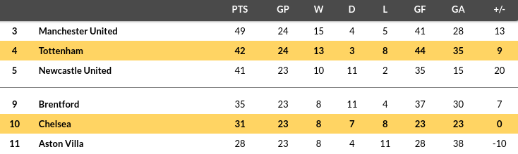 - They are now ten points behind Newcastle, who hold the fifth spot in the Europa League.