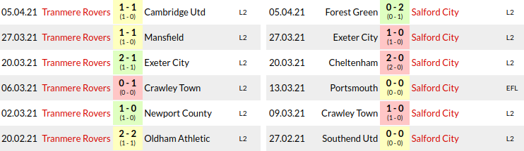 - These two have only met twice, the first leg ended in a 2-2 draw, while the other meeting came in a cup assignment that Salford won 2-1.