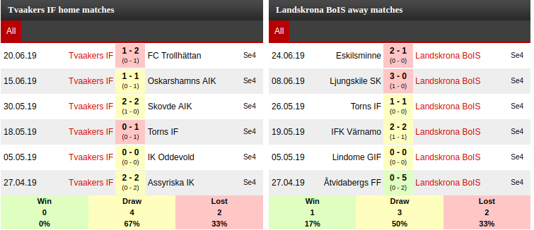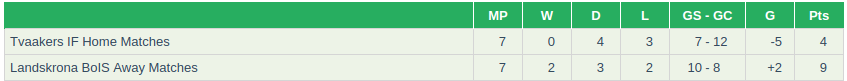 Tvaakers IF Vs Landskrona Bois Prediction: Home/ Away Matches