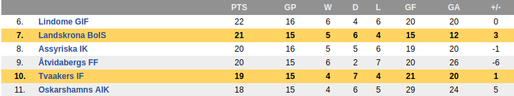 Tvaakers IF Vs Landskrona Bois Prediction: Standing