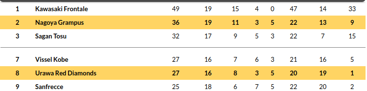 Urawa Vs Nagoya Grampus Betika: Standing