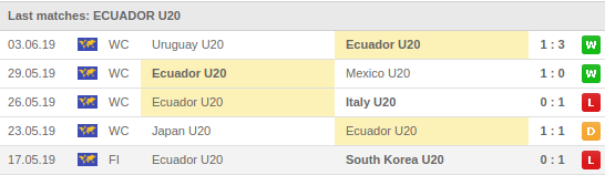 Ecuador U20 have won five matches, lost three and drawn in two in the last ten matches.