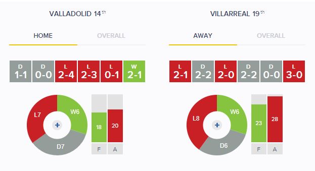 Valladolid Vs Villarreal Prediction:Home /away Form