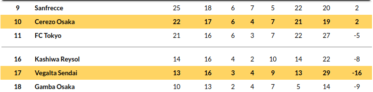 - Sendai are languishing in the bottom four with three wins in the league, four draws, and nine defeats.