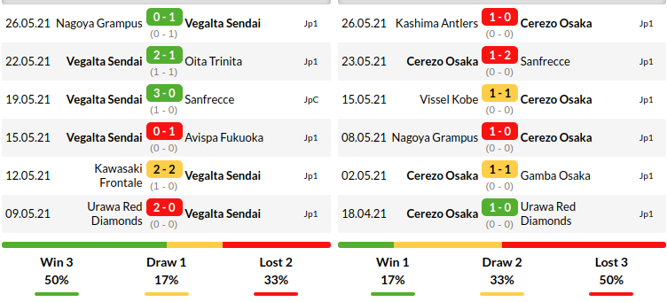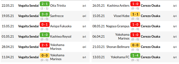Vegalta Sendai Vs Cerezo Osaka Betika : Home/Away Matches