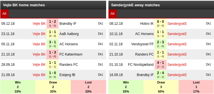 Vejle BK Vs Sonderjyske Prediction: Home/ Away Last Six Matches