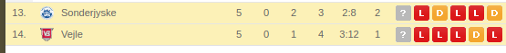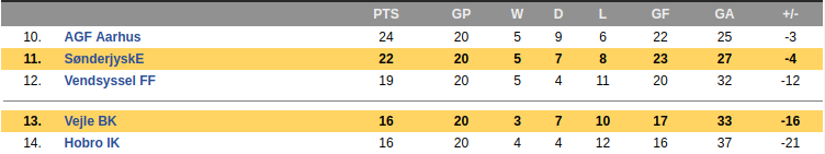 Vejle BK Vs Sonderjyske Prediction: Standing