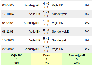 Vejle vs Sonderjyske Prediction: Head to head
