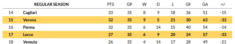 Lecce (17th): Only 1 point above relegation, winless in 12 matches (D4, L8)