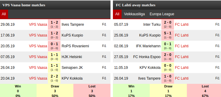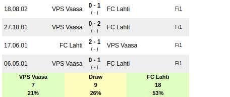 VPS Vaasa Vs Lahti Prediction: Home/Away Matches