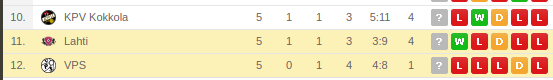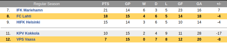 VPS Vaasa Vs Lahti Prediction: Current Form