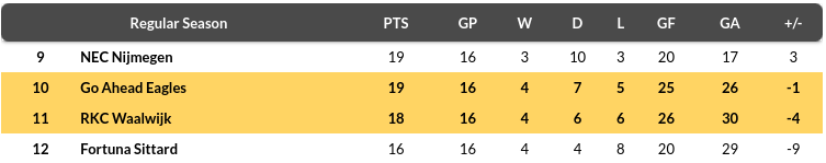 Waalwijk vs GA Eagles Prediction: Standing