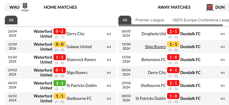Waterford vs Dundalk Predictions: Standing