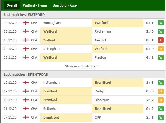 Watford Vs Brentford Predictions: Standing