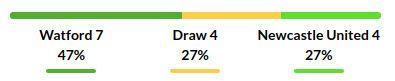 Watford will be confident after picking a win against Norwich last time out and will hope they can get something from a depleted Newcastle side.