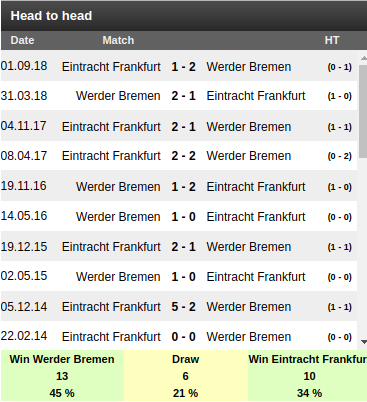 Werder Bremen vs Eintracht Frankfurt: Head to head
