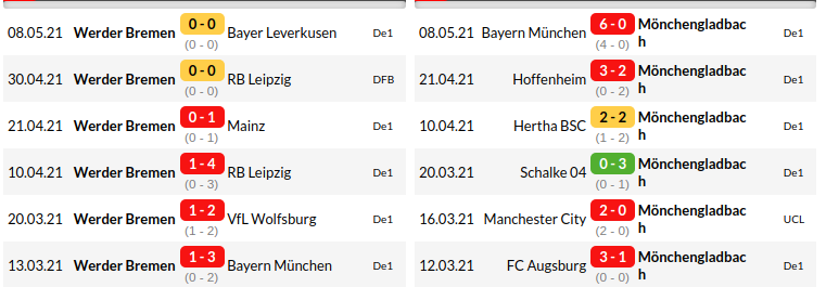 Werder Bremen vs Monchengladbach: Home/Away Matches