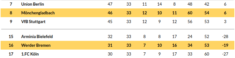 Werder Bremen vs Monchengladbach Prediction: Standing
