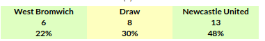 West Bromwich vs Newcastle Prediction: Home/Away Matches