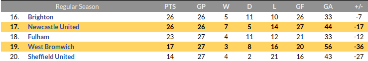 - This is a must-win for the hosts who trail nine points off Newcastle, their weekend opponents, and the team that occupy 17th place.