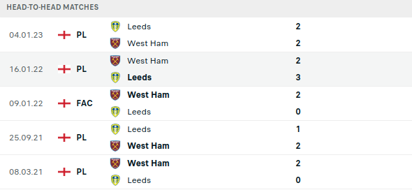 - When these two teams have met in the past, West Ham has been successful in finding the back of the net, scoring at least two goals in their last six matches against Leeds in all competitions.