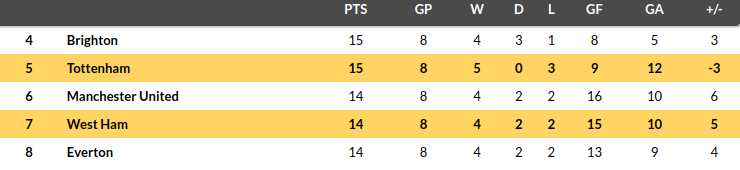 - The hammers have fared well with four wins so far and two draws, They trail just a point outside European places coming int Sunday clash.