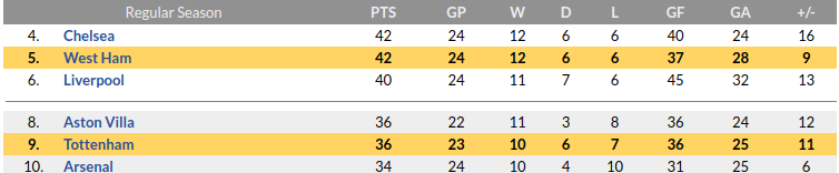 - The Hammers have been in good form lately and have only lost two of their last ten matches.